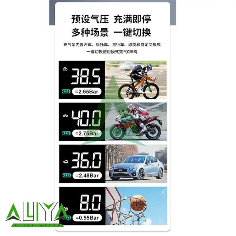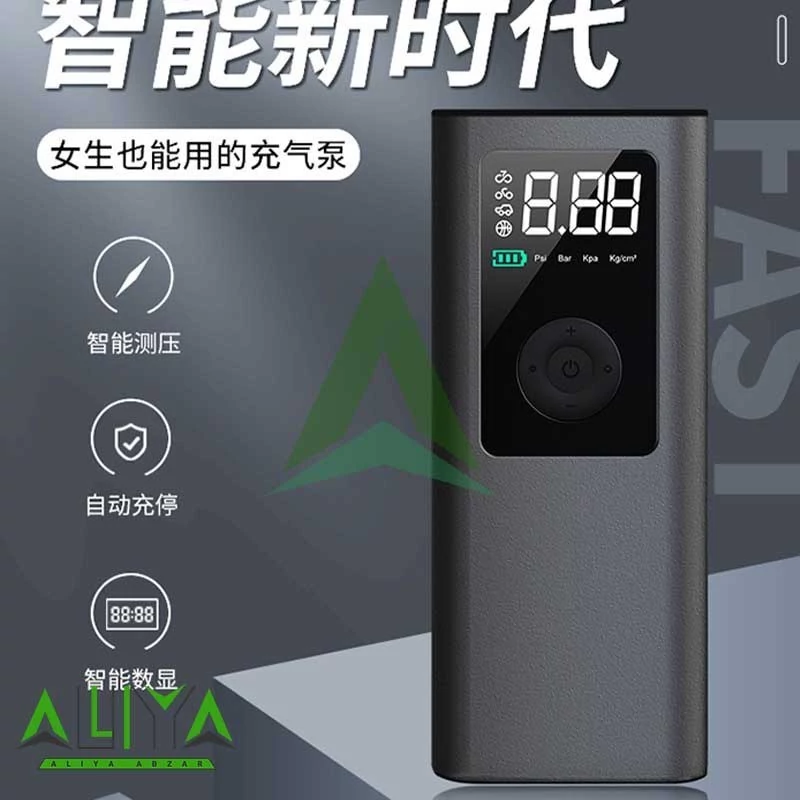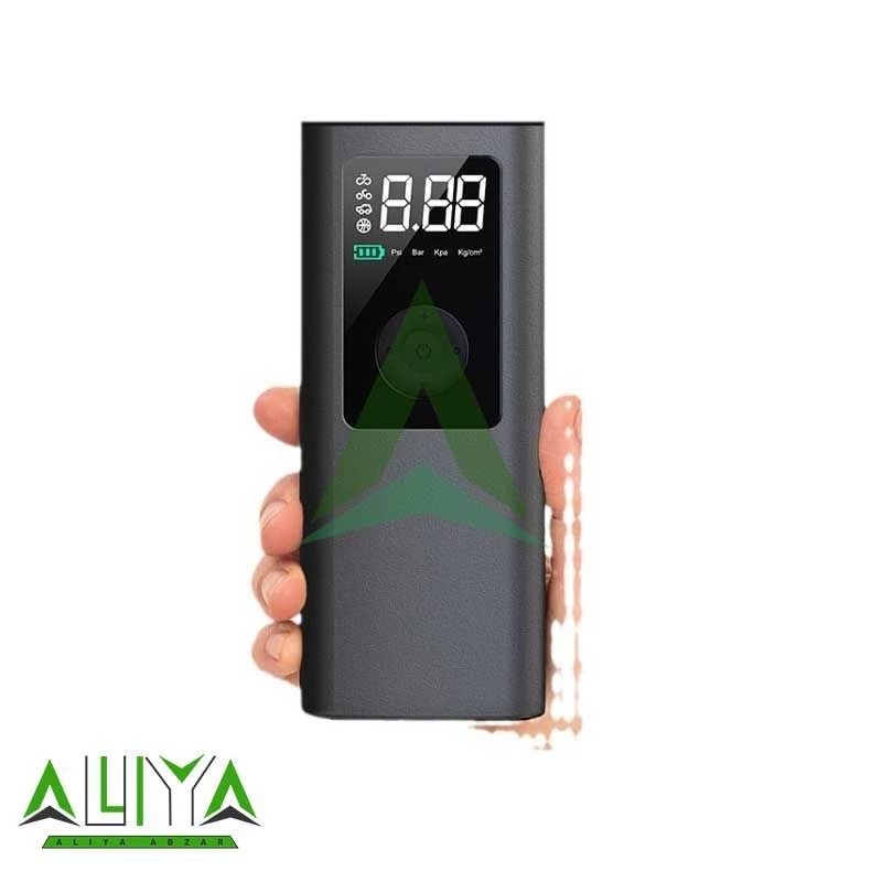 پمپ باد دیجیتال چندکاره با پاوربانک و چراغ قوه