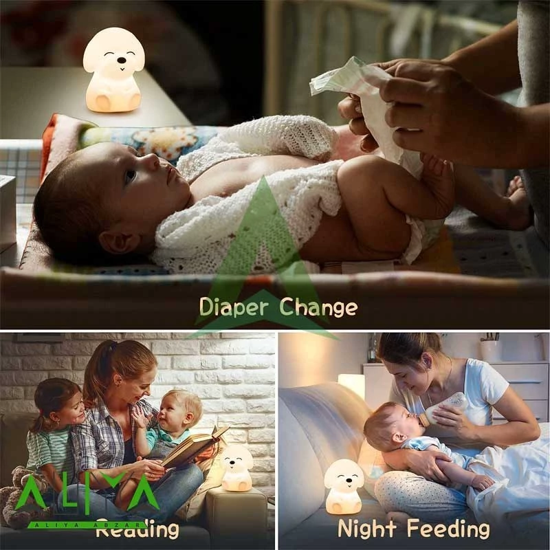 چراغ خواب کودک مدل سگ وسیله ای زیبا و کاربردی و البته ضروری برای اتاق خواب کودک شماست. جنس این چراغ خواب سیلیکونی بوده و از هرگونه آسیب رسانی به کودک شما جلوگیری می کند. این چراغ خواب با طراحی جذابی به شکل سگ دارای حالت نوری که با تغییر و انتخاب هریک از مود های این چراغ می توانید از نورهای جذاب آن لذت ببرید. حالت این چراغ خواب کودک یک ویژگی جذاب دارد که می توانید با ضربه زدن به سطح سیلیکونی چراغ خواب رنگ آن را تغییر دهید. این چراغ خواب کودک قابلیت شارژ مجدد را داراست و از طریق کابل Type-C (تایپ سی) موجود در جعبه می توانید آن را شارژ نمایید.