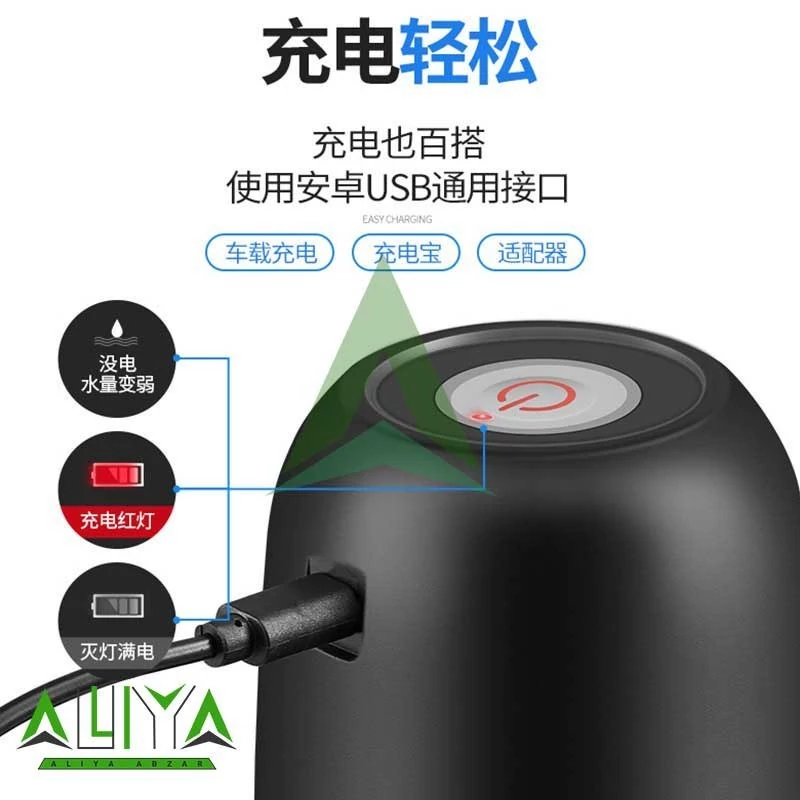 پمپ آب برقی شارژی مدل 2025 وسیله ای کاربردی است که زندگی را آسان تر و بهتر می کند. قابل استفاده مجدد و 100٪ بی خطر برای نوشیدن آب. پمپ آب اتوماتیک در وقت و انرژی صرفه جویی می کند. قابل شارژ با USB می باشد. در صورت شارژ کامل می توان از 4 تا 6 گالن آب استفاده کرد. دارای استفاده آسان با فشار دادن سوئیچ دستگاه بدون سر و صدا برای بچه ها و بزرگسالان است. بطری های با ظرفیت 1 تا 5 گالن (4.5 تا 19 لیتر) استفاده می کند. کوچک و سبک بسیار مناسب برای استفاده در خانه یا محل کار و ایده آل برای کمپینگ. آموزش نصب به این صورت است: 1. شلنگ سیلیکونی و لوله استنلس استیل را به پمپ آب برقی شارژی وصل کنید. 2. شلنگ سیلیکونی را داخل گالن آب قرار داده و پمپ آب را بر روی سر گالن قرار دهید. 3. دکمه را فشار دهید تا پمپ آب برقی شارژی روشن شود. 4. مجدد دکمه را فشار دهید تا پمپ آب برقی شارژی خاموش شود. نکات مهم از این قرار است: لطفاً 5 ساعت قبل از استفاده اول پمپ آب برقی شارژی را شارژ کنید. چراغ قرمز هنگام شارژ روشن می شود. پمپ آب برقی شارژی را در آب غوطه ور نکنید. در هنگام شارژ پمپ آب برقی از آن استفاده نکنید.