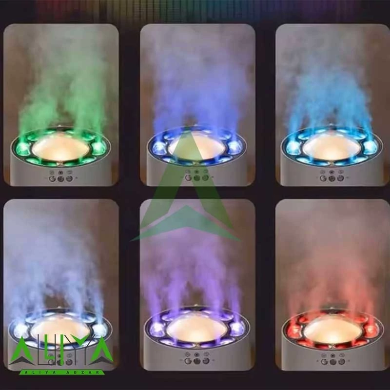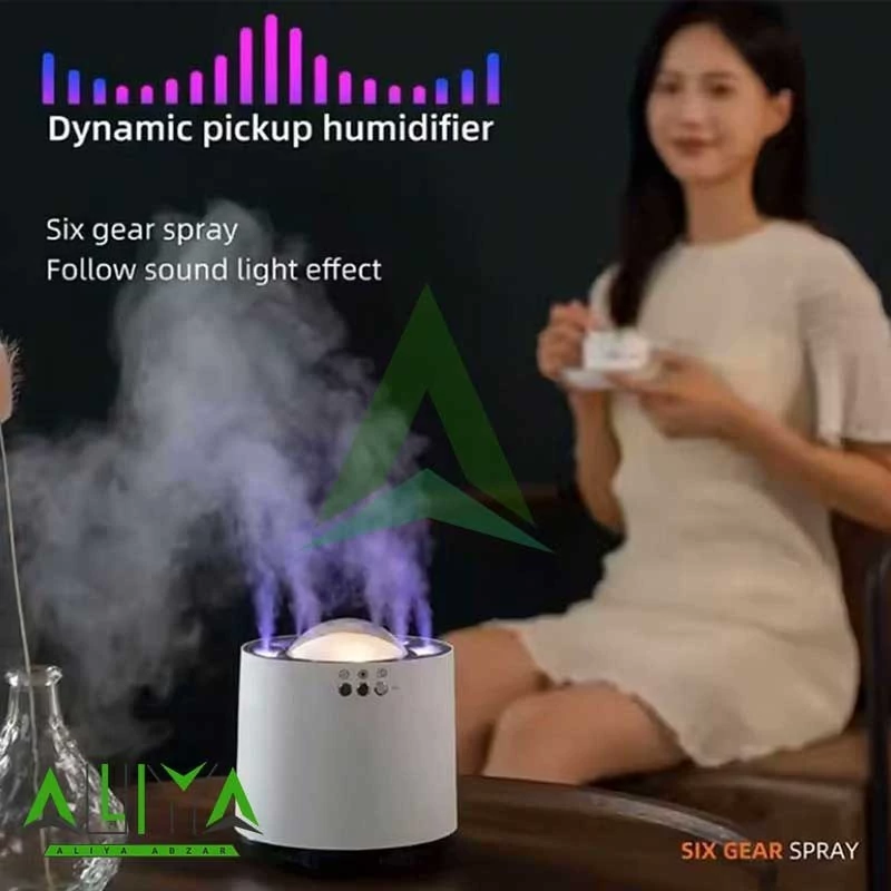 6 خروجی بخور: پخش یکنواخت رطوبت برای پوشش بهتر محیط.که هم به صورت rgb هم به صورت و هم سنسور صدا و هم میتونید به صورت یکنواخت ازش استفاده کنید