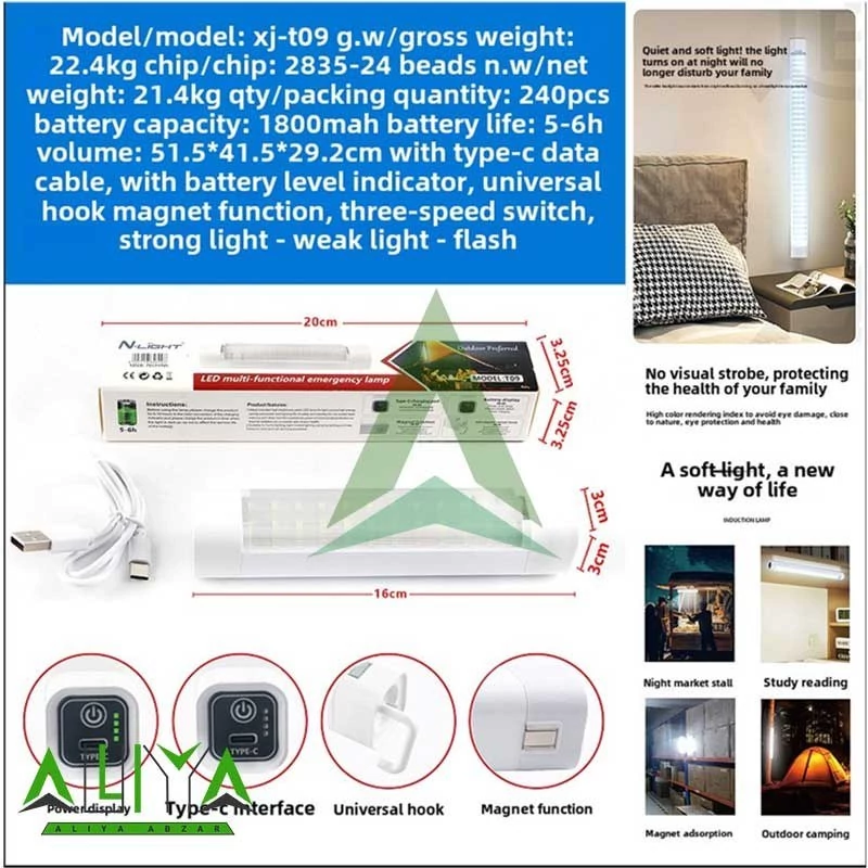 کوچک ولی پرقدرت! مهتابی شارژی مگنتی مدل کوچک، بهترین گزینه برای روشنایی بیدردسر در تاریکی است. با مگنت قوی و طراحی جمعوجور، بدون ابزار و کابل اضافی، هرجا که نیاز به نور دارید همراهتان خواهد بود در زمان هایی که برق ندارید در کنار شماست. این مهتابی با کابل تایپ C به راحتی شارژ میشه و تا 6 ساعت بهتون نور میده دارای یک باتری 1800 میلی آمپری نشانگر درصد شارژ دارد تا از میزان درصد شارژ ان مطلع بشید
