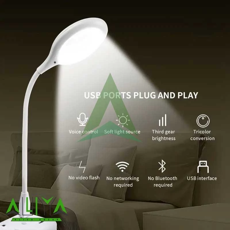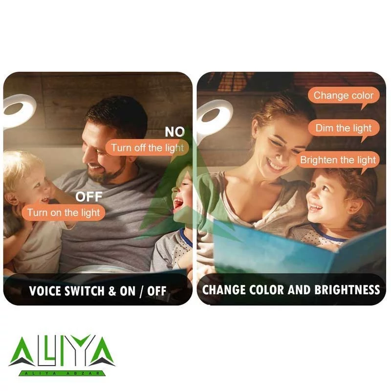 فرمان صوتی شامل: 1.روشن کردن : Light on, Turn on the light 2. خاموش کردن : Light off, Turn off the light or Sleep 3.تعویض رنگ )سه رنگ) :change the color 4.کم نور و پر نور کردن چراغ(چهار مدل) : Dim the light , Brighten the light منبع تغذیه آن USB، که میتوانید از آن در رایانه ها، بسته های برق، شارژرهای دیواری، شارژرهای خودرو و ... آستفاده کنید. ،وزن سبک، و چرخش 360 درجه و نور مناسب برای کار, مطالعه و خواب از دیگر مزایای این چراغ هوشمند است چراغ کنترل صوتی: با ساخت به ترتیب فرمان صوتی، فقط دستور را بگویید، چراغ دستور شما را برای روشن و خاموش کردن چراغ دنبال می کند، بدون نیاز به نصب APP، فقط چراغ خود را وصل کنید و کنترل کنید. x طراحی بازوی گردن غاز انعطاف پذیر: با بازوی گردن غاز انعطاف پذیر، می توانید نور را به موقعیت مورد علاقه خود تنظیم کنید. این نور شب برای اتاق خواب، آشپزخانه، حمام، اتاق نشیمن، اتاق کودک، راهرو، پله، مهد کودک و چادر کمپینگ مناسب است. x تغذیه با پورت USB A: می توانید آن را به هر منبع تغذیه USB مانند پاوربانک، لپ تاپ، رایانه شخصی، آداپتور یا هر دستگاه دیگری با خروجی USB وصل کنید. لطفاً توجه داشته باشید که این لامپ با USB-C سازگار نیست. پورت ها و لامپ باید به پورت USB نوع A وصل شوند. xرنگ و روشنایی قابل تنظیم: لامپ دارای حالت سه رنگ سفید، نارنجی، سفید+نارنجی است که با فرمان صوتی "تغییر رنگ" قابل کنترل است. همچنین می توانید با صحبت کردن "Dim the light" و "Brighten the Light" روشنایی لامپ را به صورت صوتی کنترل کنید. x حمل آسان: بازوی گردن غاز قابل خم شدن است، بنابراین می توان آن را تا کرد و به راحتی در کیف یا جیب خود نگهداری کرد. به شما اجازه حمل و نقل در هنگام سفر در اطراف.