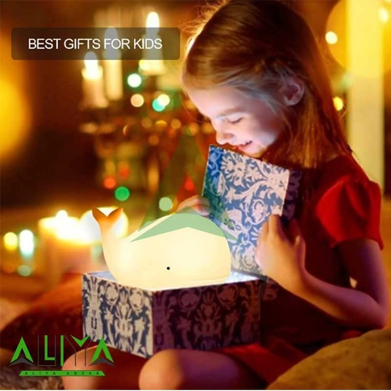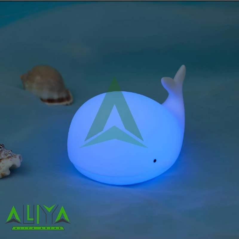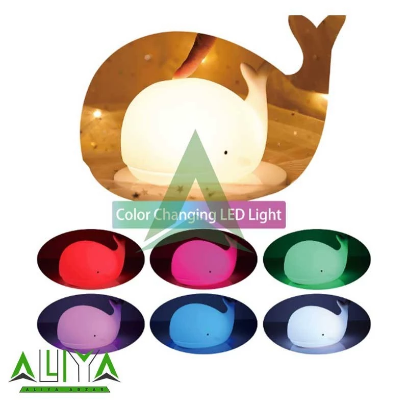 چراغ خواب کودک مدل نهنگ وسیله ای زیبا و کاربردی و البته ضروری برای اتاق خواب کودک شماست. جنس این چراغ خواب سیلیکونی بوده و از هرگونه آسیب رسانی به کودک شما جلوگیری می کند. این چراغ خواب با طراحی جذابی به شکل نهنگ دارای حالت نوری که با تغییر و انتخاب هریک از مود های این چراغ می توانید از نورهای جذاب آن لذت ببرید. حالت این چراغ خواب کودک یک ویژگی جذاب دارد که می توانید با ضربه زدن به سطح سیلیکونی چراغ خواب رنگ آن را تغییر دهید. این چراغ خواب کودک قابلیت شارژ مجدد را داراست و از طریق کابل Type-C (تایپ سی) موجود در جعبه می توانید آن را شارژ نمایید.